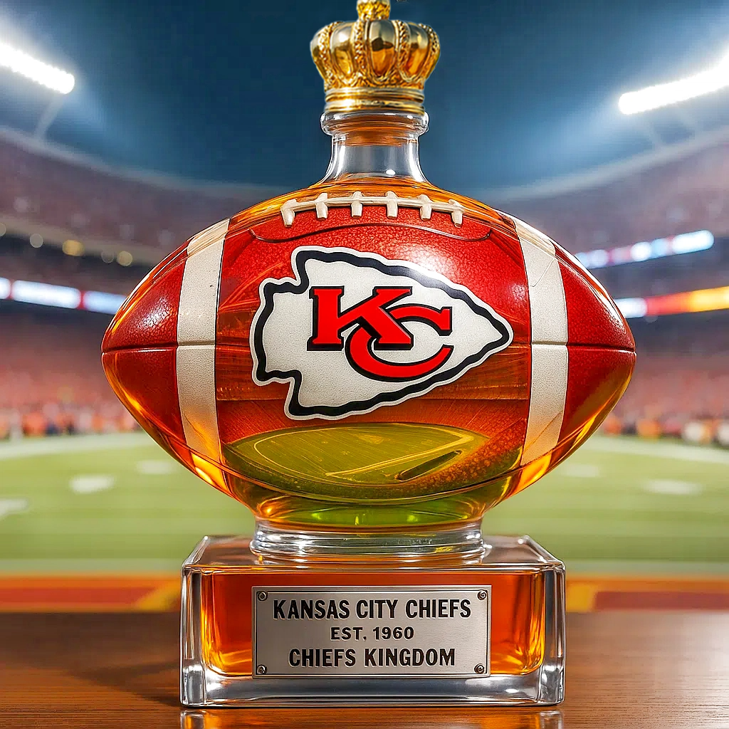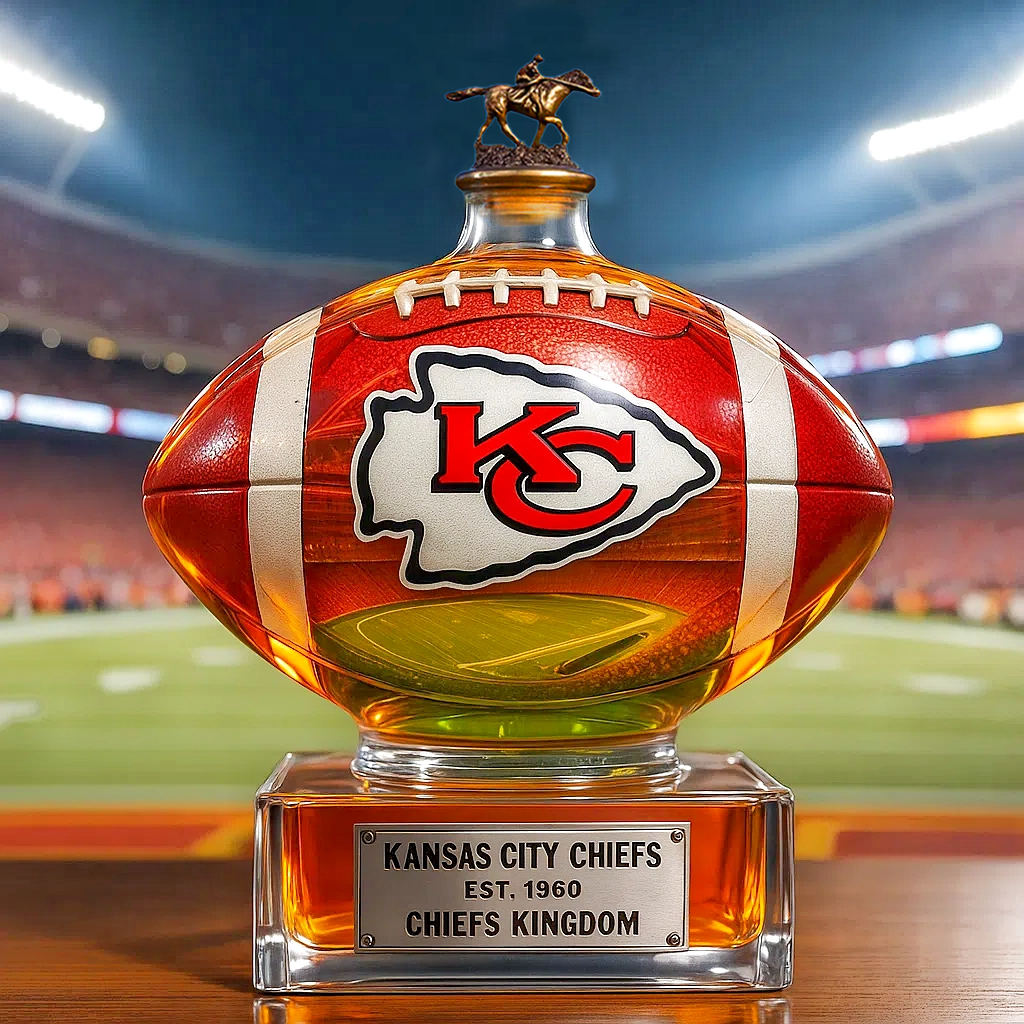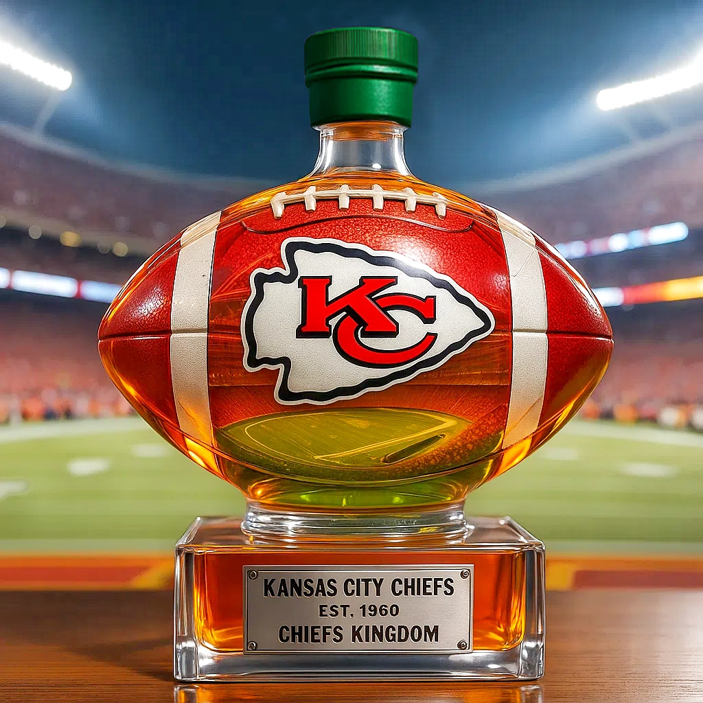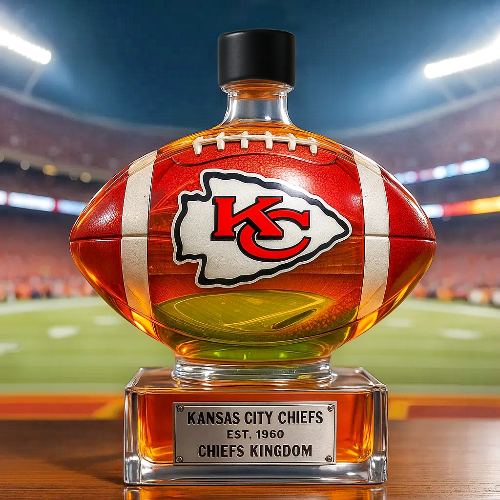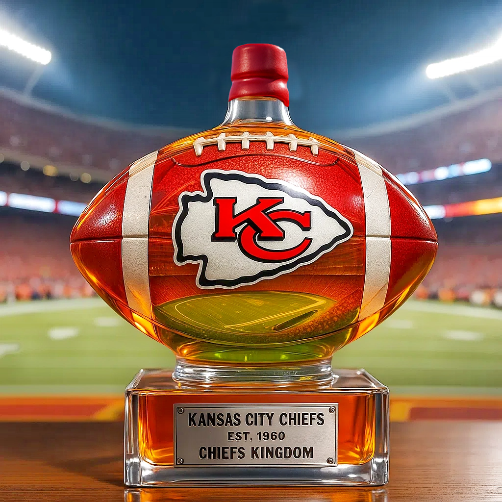 Celebrate the unstoppable spirit of the Kansas City Chiefs with this masterfully crafted whiskey decanter — a glass football crowned with a sleek, championship-style stopper, forever honoring champions who rise when it matters most.