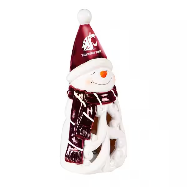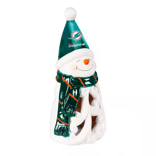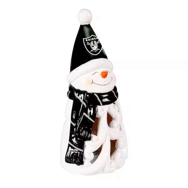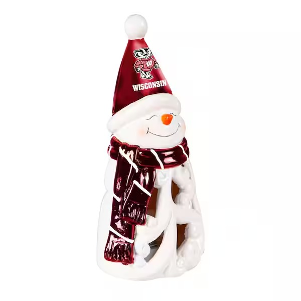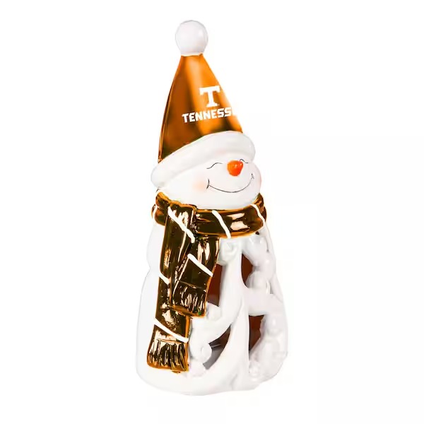 Bring team spirit to any holiday decor with this LED snowman statuary. This charming snowman is decked out in a cozy scarf and hat adorned with the team colors and logo.
